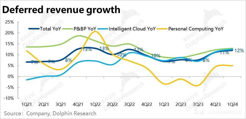 细分来看的话,各板块的递延收入增速也有环比有所提升,但其中当季营收修复最好的个人计算业务递延收入改善却较慢。