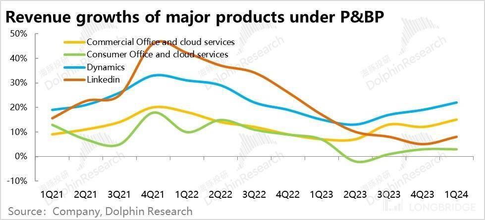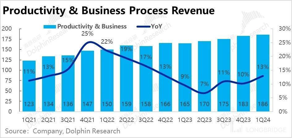 因此,本季生产力和商务流程(P&BP)板块的整体营收达到 186 亿美元,同比增速同样上升 2pct,也出现了回暖迹象,且高于先前指引和市场预期的 183 亿。