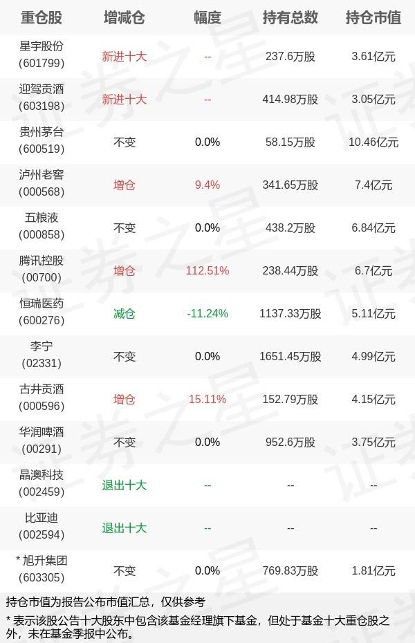 证券之星消息,10月25日易方达基金旗下冯波管理的易方达竞争优势企业混合型基金公布三季报,近1年净值增长率-18.55%。与上一季度相比,该基金前十大重仓股新增星宇股份,迎驾贡酒;其中贵州茅台持仓占比9.53%,为该基金第一大重仓股;晶澳科技,比亚迪等退出前十大重仓股;详细数据如下: