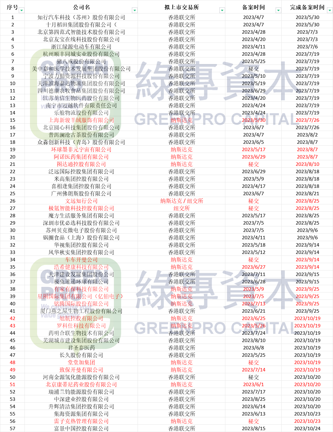 10月24日,证监会对富景中国境外发行上市备案予以确认,这是本周第3家通过备案企业。至此,共57家企业(赴美上市17家,赴港上市40家)完成备案(名单附在文末)。