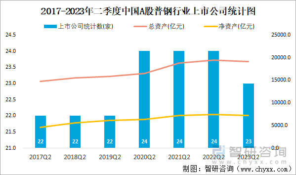 2017-2023年二季度中国A股普钢行业上市公司统计图