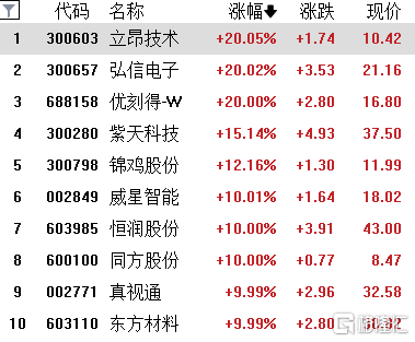 算力、数据要素概念股大涨,立昂科技、弘信电子、优刻得20cm涨停,紫天科技涨超15%,锦鸡股份涨超12%,恒润股份、中贝通信、真视通等多股10cm涨停。
