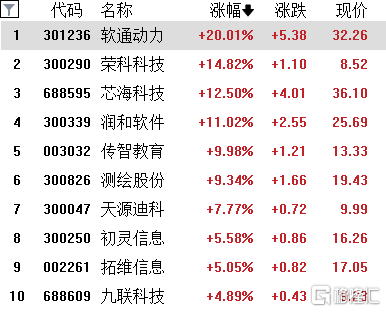 鸿蒙概念走强,软通动力20cm涨停,荣科科技涨超14%,芯海科技涨超12%,润和软件、初灵信息、拓维信息等纷纷冲高。