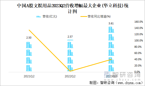 中国A股文娱用品2023Q2营收增幅最大企业(华立科技)统计图