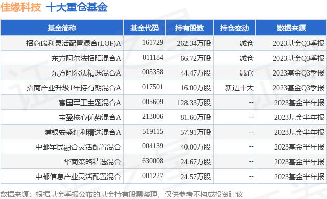 根据2023基金Q3季报公募基金重仓股数据,重仓该股的公募基金共4家,其中持有数量最多的公募基金为招商瑞利灵活配置混合(LOF)A。招商瑞利灵活配置混合(LOF)A目前规模为23.09亿元,最新净值2.058(10月24日),较上一交易日上涨1.17%,近一年下跌7.9%。该公募基金现任基金经理为陆文凯。陆文凯在任的基金产品包括:招商产业升级1年持有期混合A,管理时间为2023年5月29日至今,期间收益率为nan%。