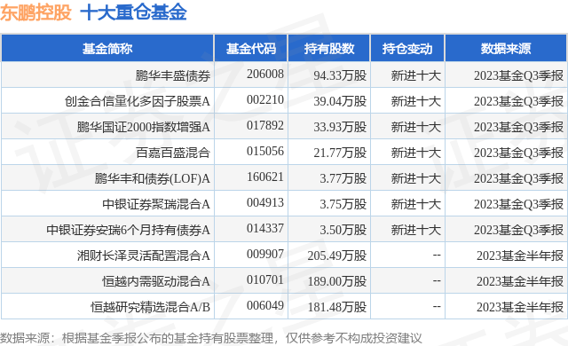 重仓东鹏控股的前十大公募基金请见下表:
