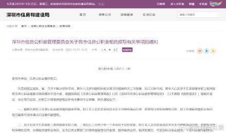 10月25日,深圳市住房和建设局官网发布《深圳市住房公积金管理委员会关于我市住房公积金租房提取有关事项的通知》。通知指出,职工本人及其家庭成员未在本市拥有商品住房、政策性住房和保障性住房,职工办理租房提取业务的,每月最高可按申请当月应缴存额提取。