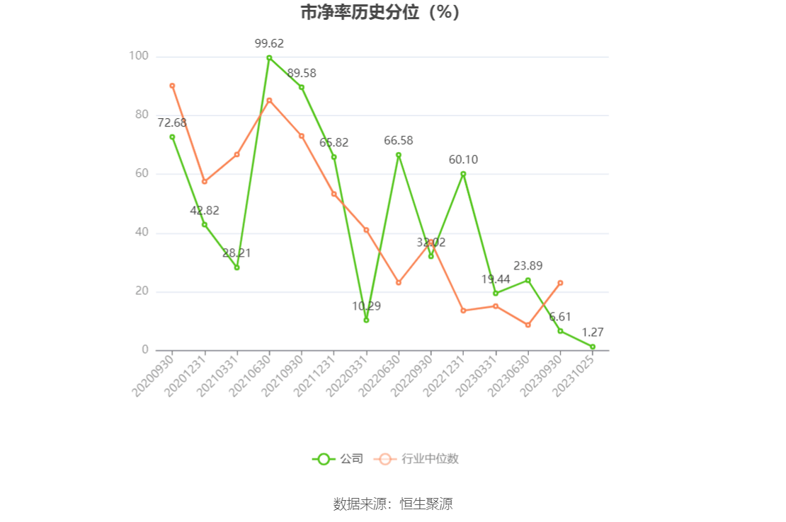 市盈率为负时,不显示当期分位数,会导致折线图中断。