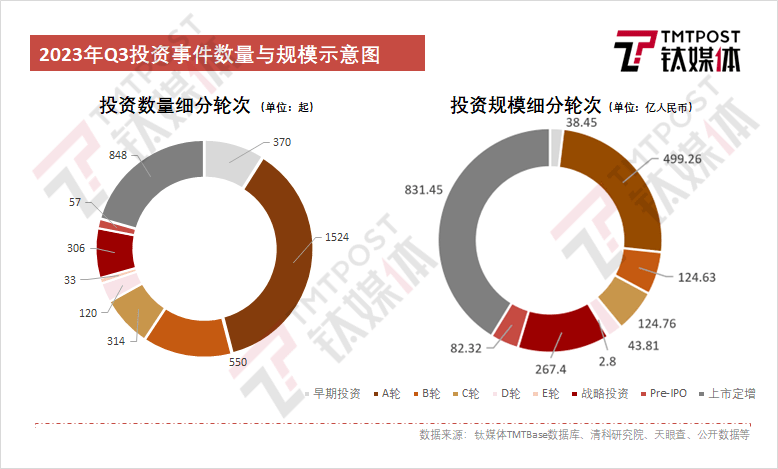 2023年第三季度共发生投资事件6292起,融资金额合计达2379.35亿元。