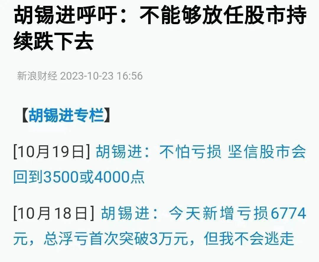 不定期更新的股票大V胡锡进,当天都忍不住写了长文,不仅透露自己入市以来总浮亏已经达到4.4万,还呼吁: