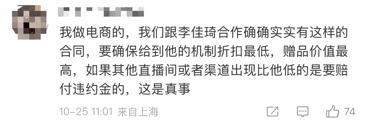 有从事电商的网友现身说法,直言与李佳琦合作时确实有这种合同约定。