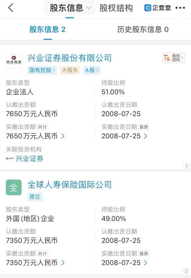 兴证全球基金成立于2003年9月,原名兴业基金管理有限公司。2008年,全球人寿保险国际公司(下称“全球人寿”)受让该公司股权,形成目前兴业证券持股51%、全球人寿持股49%的局面。全球人寿成为股东同年,该公司更名为兴业全球基金管理有限公司。之后,2016年12月,更名为兴全基金管理有限公司;2020年3月,变更为现在的名字,即兴证全球基金。