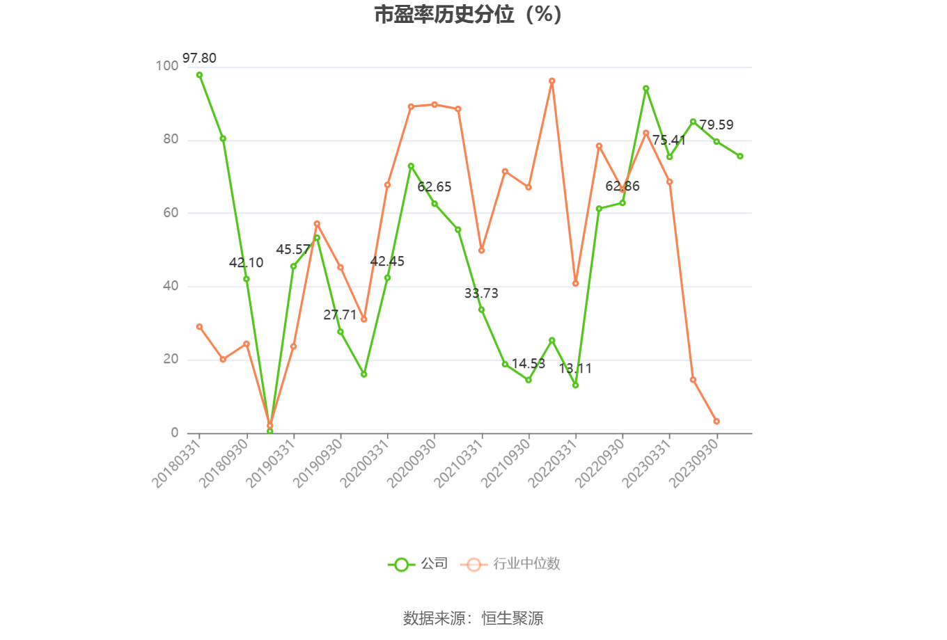 市盈率为负时,不显示当期分位数,会导致折线图中断。