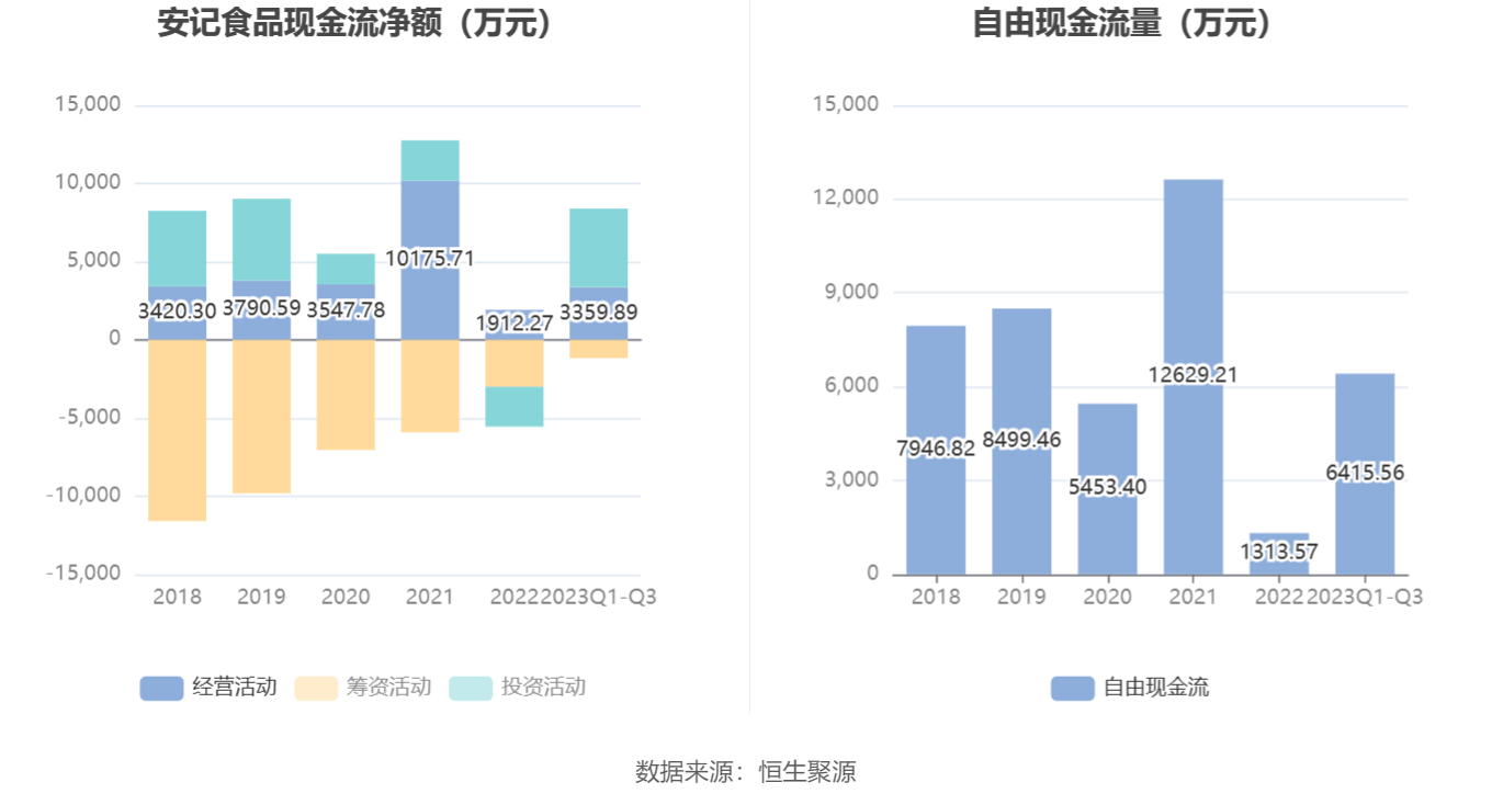 进一步统计发现,2023年前三季度公司自由现金流为6415.56万元,上年同期为-3133.88万元。