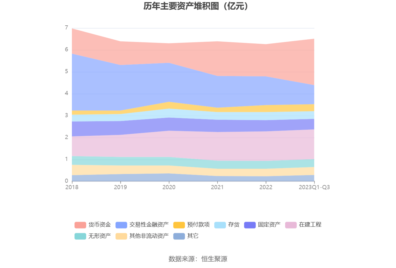 资产重大变化方面,截至2023年三季度末,公司货币资金较上年末增加44.55%,占公司总资产比重上升9.13个百分点;交易性金融资产较上年末减少33.61%,占公司总资产比重下降7.58个百分点;应收账款较上年末增加102.64%,占公司总资产比重上升1.58个百分点;固定资产较上年末减少5.43%,占公司总资产比重下降0.74个百分点。