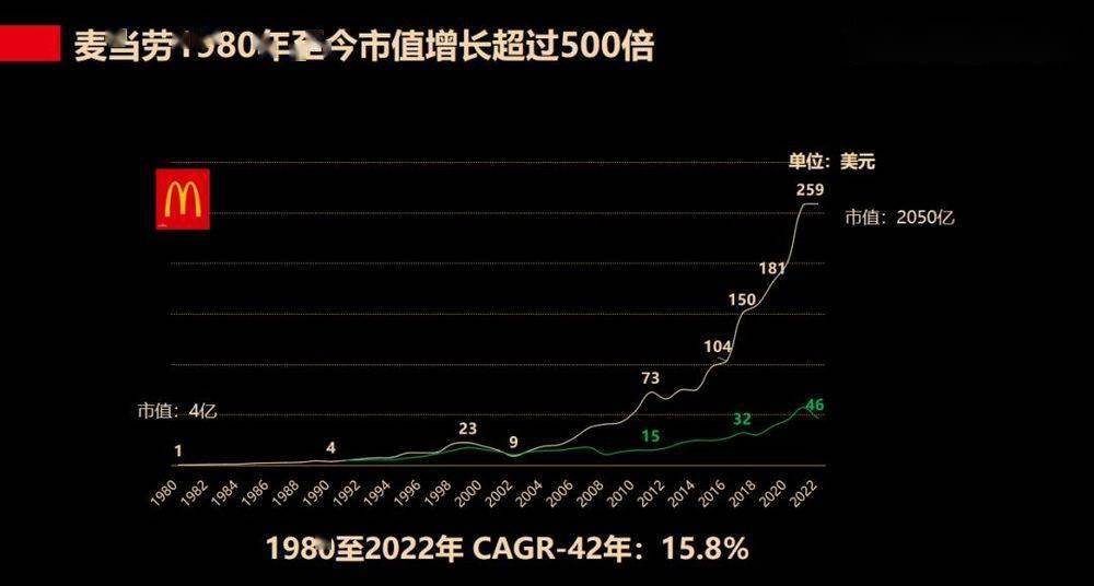餐饮企业完全可以做到长青。 以麦当劳为例,自1980年至今,其市值增长超过500倍。