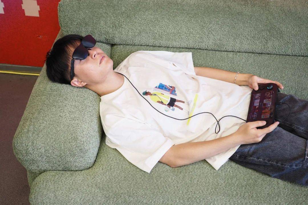 不管你在坐高铁飞机,还是坐在某个地方打发时间,都可以带上 AR 眼镜连上 Station 看电影,打游戏甚至是办公。