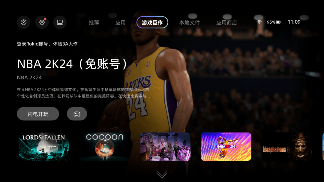 再比如,我把 Rokid Max 连上一台 Windows 掌机,也能迅速身临其境玩游戏。