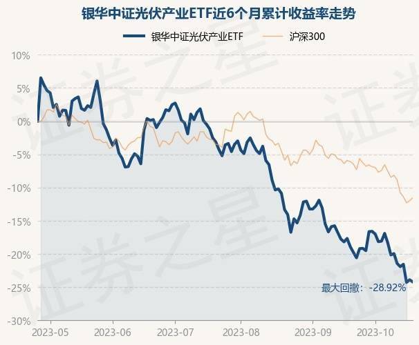 证券之星消息,10月25日,银华中证光伏产业ETF最新单位净值为0.7608元,累计净值为0.7608元,较前一交易日下跌0.42%。历史数据显示该基金近1个月下跌6.26%,近3个月下跌21.38%,近6个月下跌24.2%,近1年下跌39.36%。该基金近6个月的累计收益率走势如下图: