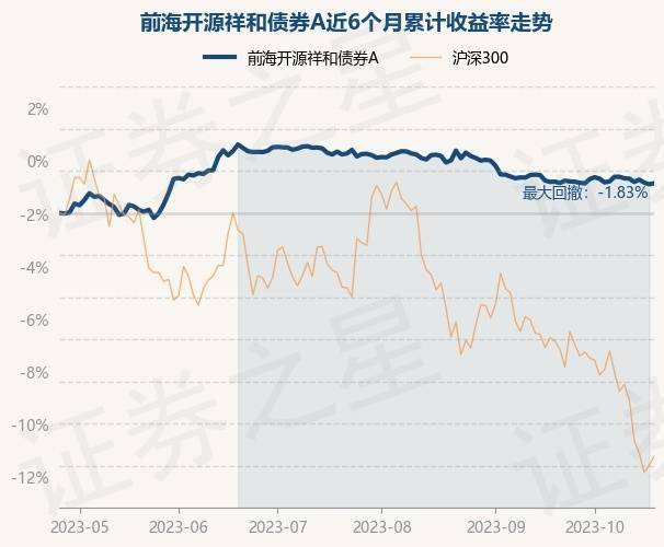 证券之星消息,10月25日,前海开源祥和债券A最新单位净值为1.3922元,累计净值为1.4622元,较前一交易日上涨0.05%。历史数据显示该基金近1个月下跌0.09%,近3个月下跌1.27%,近6个月上涨1.38%,近1年上涨1.62%。该基金近6个月的累计收益率走势如下图: