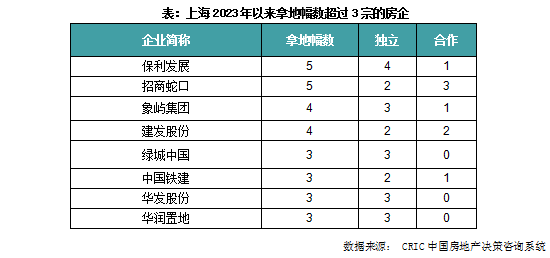拿地房企方面,土拍规则更新后国央企集中度进一步提升,几乎拿下全部摇号地块,保利发展、招商、象屿、建发各竞得2宗地块,中海则以240亿元刷新上海总价地王TOP3。