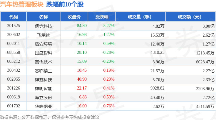 从资金流向上来看,当日汽车热管理板块主力资金净流入1.52亿元,游资资金净流入1353.2万元,散户资金净流出1.66亿元。汽车热管理板块个股资金流向见下表: