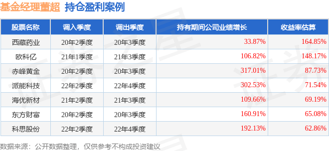 董超管理的汇添富逆向投资混合A基金在20年2季度买入西藏药业,在持有1个季度后在20年3季度卖出。持有期间的估算收益率为164.85%,持有期间西藏药业在2019年到2020年的年报归属净利润增幅达33.87%。