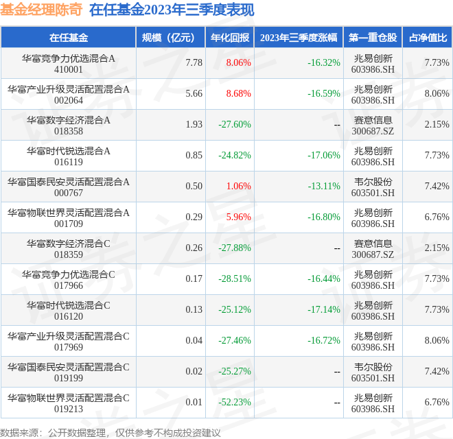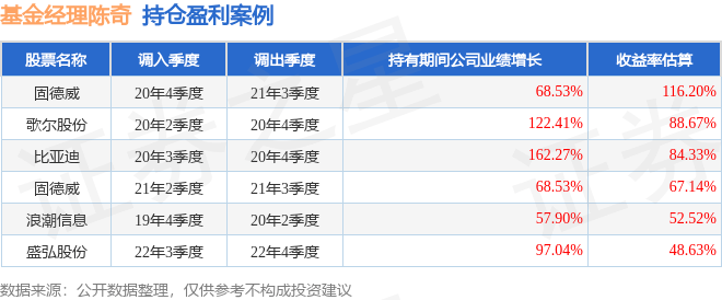 陈奇管理的华富产业升级灵活配置混合A基金在20年4季度买入固德威,在持有3个季度后在21年3季度卖出。持有期间的估算收益率为116.2%,持有期间固德威在2020年到2021年的年报营业总收入增幅达68.53%。