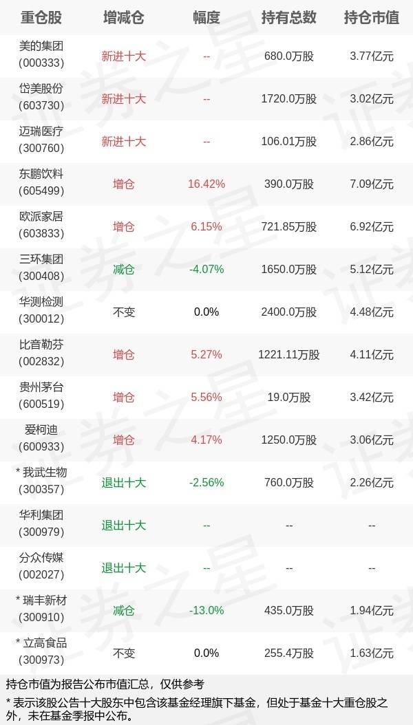 证券之星消息,10月25日广发基金旗下傅友兴管理的广发稳健增长开放式基金公布三季报,近1年净值增长率2.61%。与上一季度相比,该基金前十大重仓股新增美的集团,岱美股份,迈瑞医疗;并对东鹏饮料增仓55.0万股,为该基金第一大重仓股;我武生物,华利集团,分众传媒等退出前十大重仓股;详细数据如下: