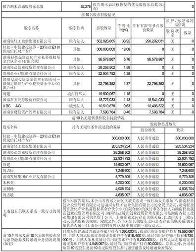 (一)普通股股东总数和表决权恢复的优先股股东数量及前十名股东持股情况表