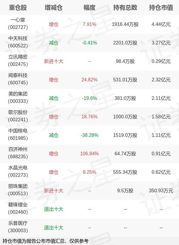证券之星消息,10月25日兴业基金旗下周鸣 丁进管理的兴业收益增强债券型基金公布三季报,近1年净值增长率-0.32%。与上一季度相比,该基金前十大重仓股新增立讯精密,丽珠集团;并对一心堂增仓140.48万股,为该基金第一大重仓股;赣锋锂业,乐普医疗等退出前十大重仓股;详细数据如下: