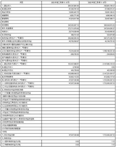 2023年前三季度公司实现营业总收入174,635.52万元,较上年同期增加7.11%;实现归属于上市公司股东的净利润76,374.15万元,较上年同期增加3.61%。