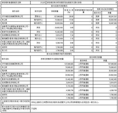 (一)普通股股东总数和表决权恢复的优先股股东数量及前十名股东持股情况表