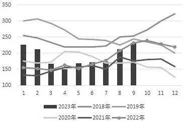 从今年7月开始,马来西亚棕榈油产量开始同比恢复性增长,9月产量达到183万吨,同比增加3%。然而,受其他植物油替代消费与印尼棕榈油出口挤占的影响,出口表现始终不佳,导致8月、9月马来西亚棕榈油库存快速累积,9月底库存达到231万吨,处在历史同期高位。