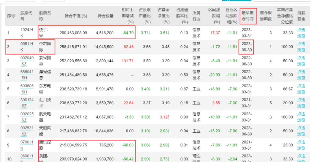 另外,三季度新增重仓股还有和海光信息,两只股均属于电子板块。这两只股此前曾进入过该之列,紫光国微曾在2022年二季度时为重仓股,海光信息曾在2022年三季度时是重仓股。另外,今年三季度末的新晋重仓股,曾于2021年一季度时是该基金重仓股。