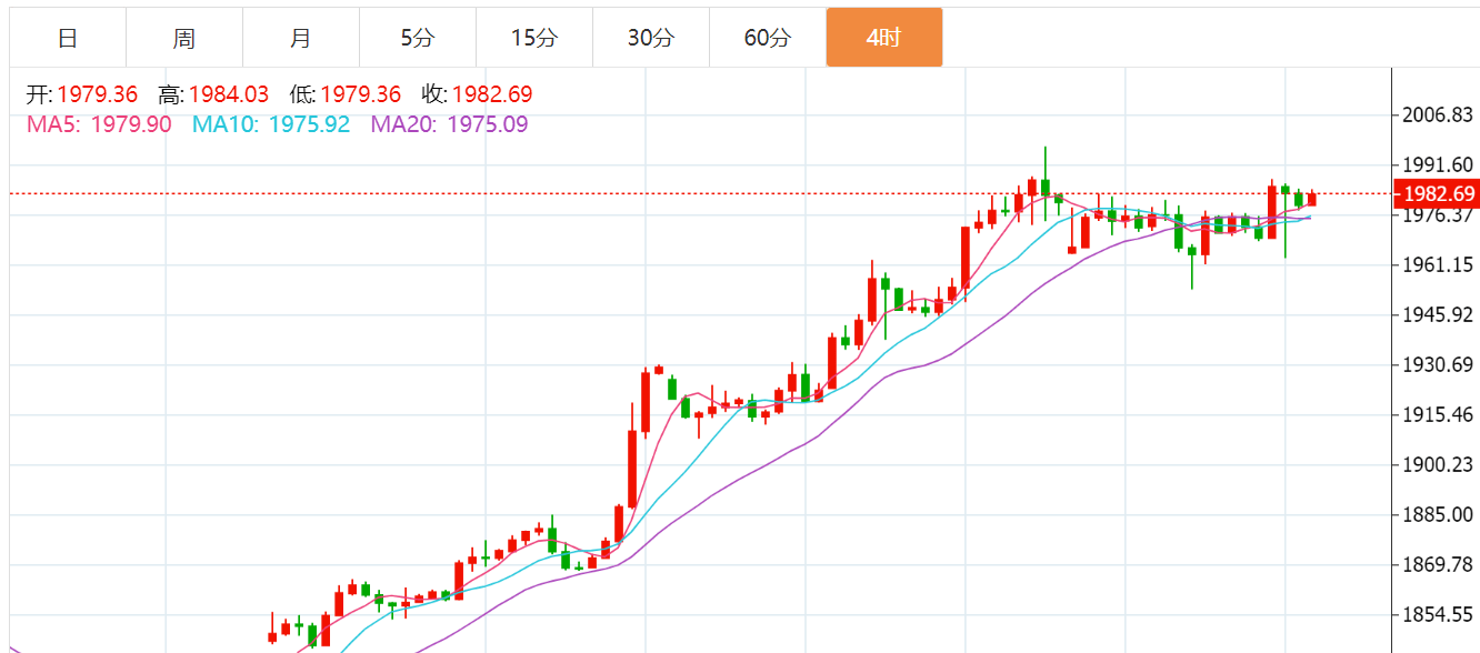 黄金技术面分析:黄金昨日收报一根较长下影K线,接近于十字星,表明1953低位有一定的支撑力度。一般此类形态出现后,第二日会回补影线,并继续看涨上攻。如果以1953作为对错防守,那么可能高位还会继续震荡整理,无法马上强势去刷1997高点。但如果今日没有很好的回补影线,而是直接阳线拉高,突破昨日高点进行上冲,那么很快会冲击2000关口。另外,10日均线支撑也逐步上移至1946,这也是一个不错的关键支撑买点。因此,个人认为短期趋势多头仍在,只是前面的强势一路上攻被暂缓了,进入短暂的修正整理阶段。而修正时间的长短将取决于今日是否回补影线。
