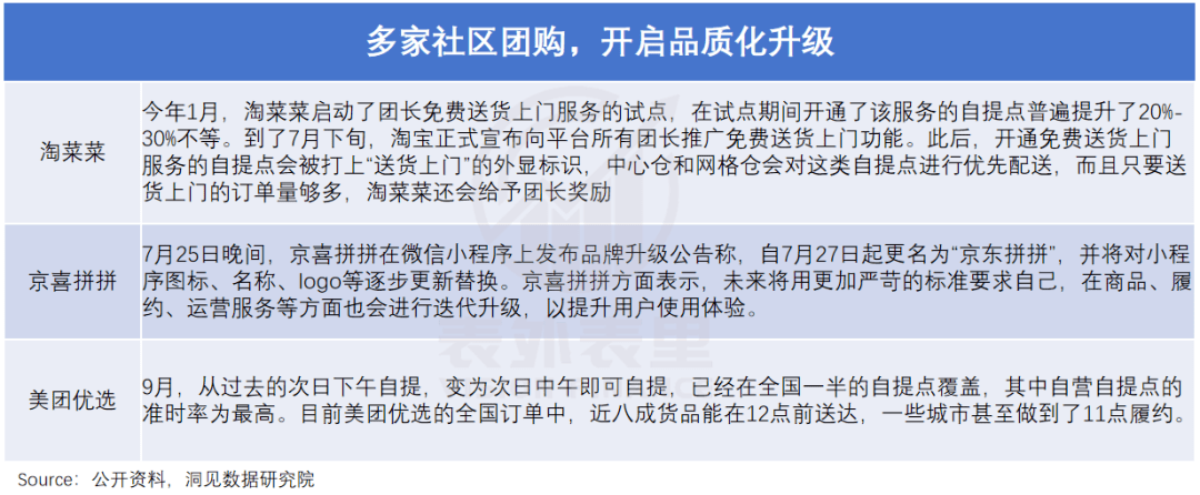 此外,上个月开始,美团优选的提货也从过去的次日下午,变为次日中午,配送时间缩短将近五小时,同时交付标准也有所提高。