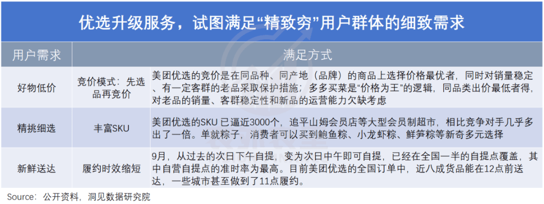 如此来看,优选业务不仅是一张明牌,更是美团核心业务抢夺三四线增量、守住一二线存量市场的一名暗兵。