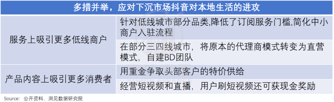 也就是说,客观条件限制,使平台正面挑战三四线市场本地生活的难度较大。