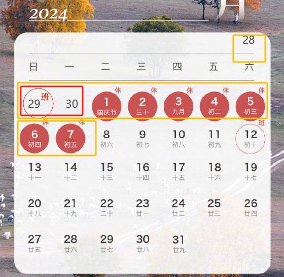 对于刚上班、带薪年假不多的小伙伴来说,2024年国庆节将是最适合请假的节假日。只需要9月29日至30日请假两天,就可以获得10天长假。
