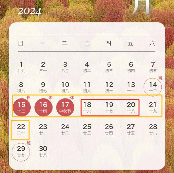 中秋节:请假3天可连休8天
