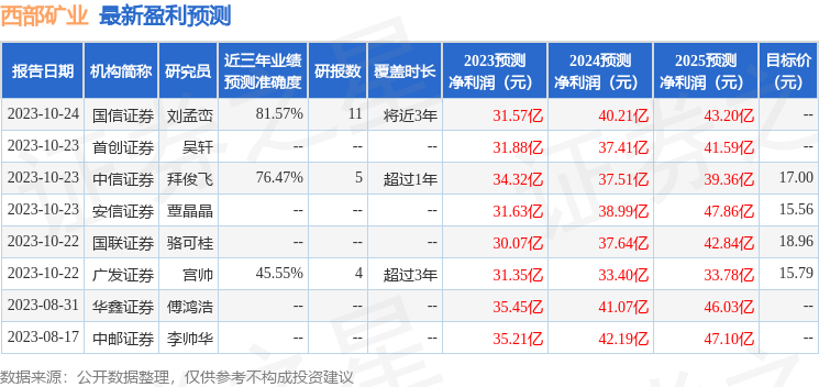 证券之星消息,2023年10月25日西部矿业(601168)发布公告称公司于2023年10月24日接受机构调研,西南证券朱善颖 丁昊、天弘基金耿浩然参与。