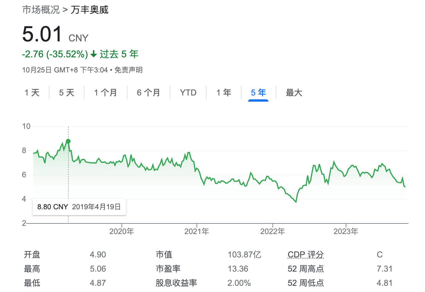 或许是对频繁收购控股股东资产后的发展并不看好,近年来,股价持续低迷,目前股价处于近一年低位,截至今日收盘,收于5.01元。(本文首发于钛媒体APP,作者|张孙明烁)