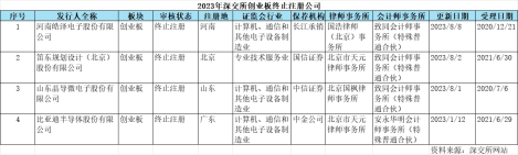 《电鳗财经》统计数据显示,2023年以来,创业板4家终止注册的拟上市公司计划募资规模34.1亿元。