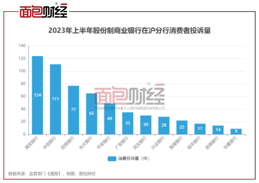 股份行在沪分行消费投诉量:招商银行上海分行高居第三