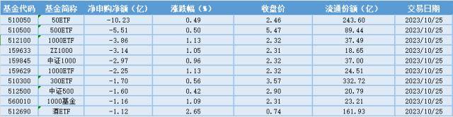 资金流出方面,25日净赎回金额最多的是50ETF(510050),赎回金额10.23亿元。另外还有500ETF(510500)、1000ETF(512100)、ZZ1000(159633)赎回金额超3亿元,赎回金额分别为5.51亿元、3.86亿元、3.14亿元。其余ETF赎回金额相对较小,均未超3亿元。