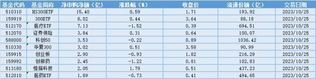细分到资金流动情况上来看,25日净申购金额最大的为HS300ETF(510310),当日净申购金额为15.40亿元。净申购金额超过3.8亿元的,排名靠前的有300ETF(159919)、医疗ETF(512170)、证券保险(512070),申购金额为8.02亿元、7.13亿元、3.84亿元,净申购净额数量较大的为A股相关指数ETF。