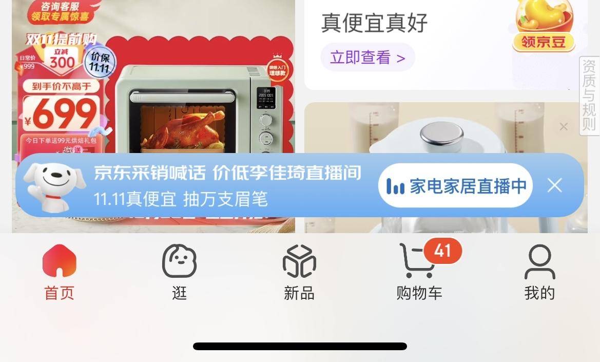 ▲京东家电家居分区上线“价低李佳琦直播间”