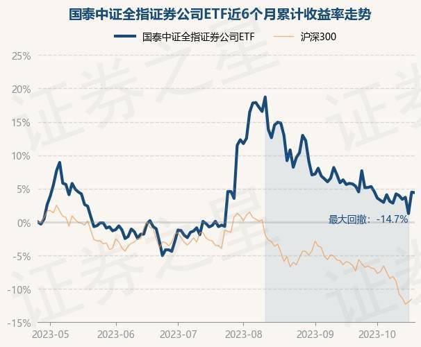证券之星消息,10月25日,国泰中证全指证券公司ETF最新单位净值为0.9434元,累计净值为0.9434元,较前一交易日下跌0.06%。历史数据显示该基金近1个月下跌0.72%,近3个月下跌0.18%,近6个月上涨4.39%,近1年上涨16.34%。该基金近6个月的累计收益率走势如下图: