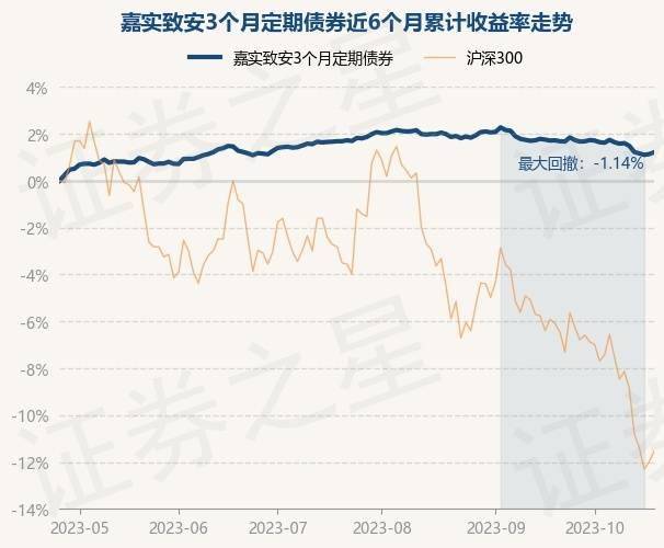 证券之星消息,10月25日,嘉实致安3个月定期债券最新单位净值为1.1234元,累计净值为1.1548元,较前一交易日上涨0.08%。历史数据显示该基金近1个月下跌0.51%,近3个月下跌0.57%,近6个月上涨1.31%,近1年上涨2.52%。该基金近6个月的累计收益率走势如下图: